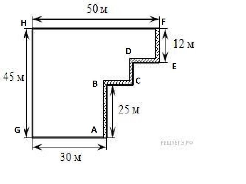 На рисунке изображён план сада, вдоль периметра которого нужно вырыть канаву