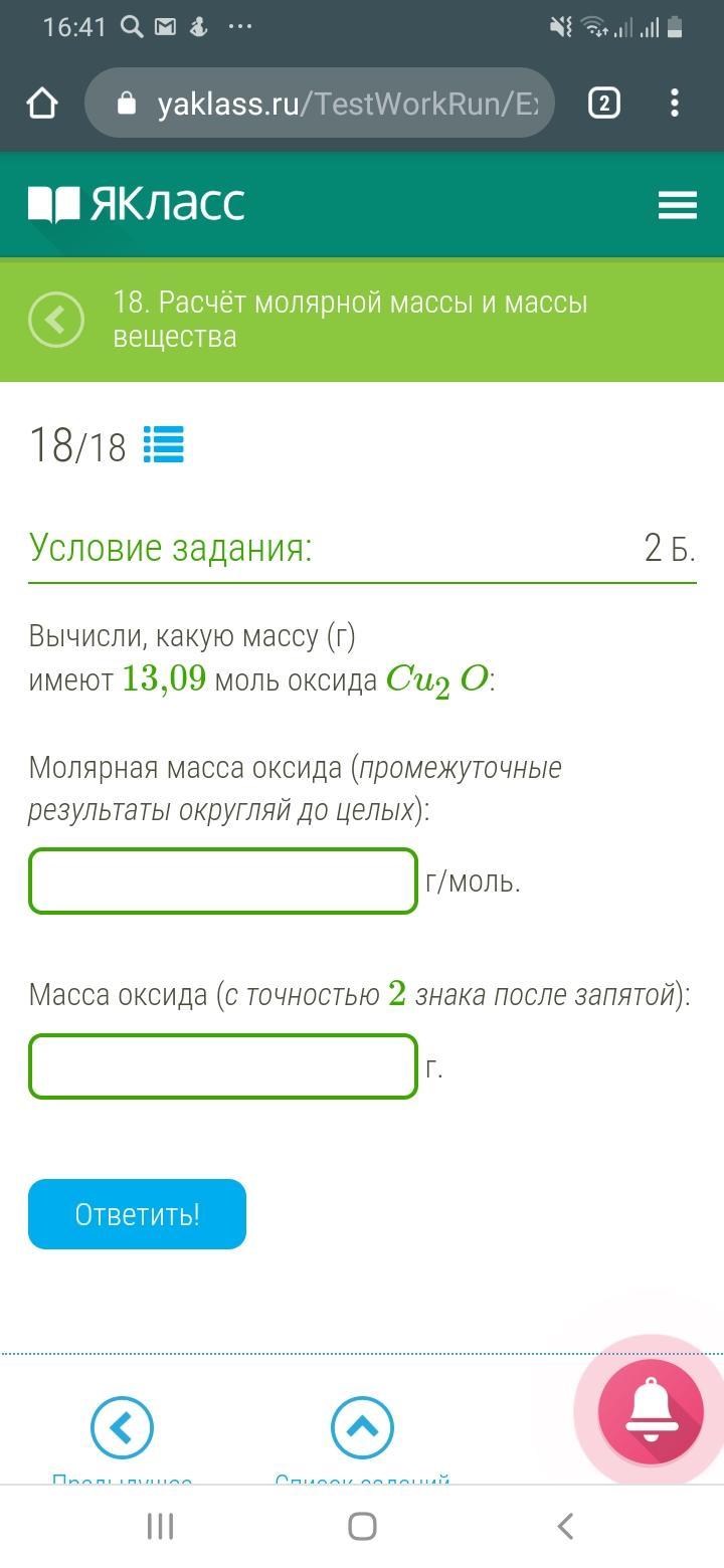 Молярная масса оксида (промежуточные результаты округляй до целых):