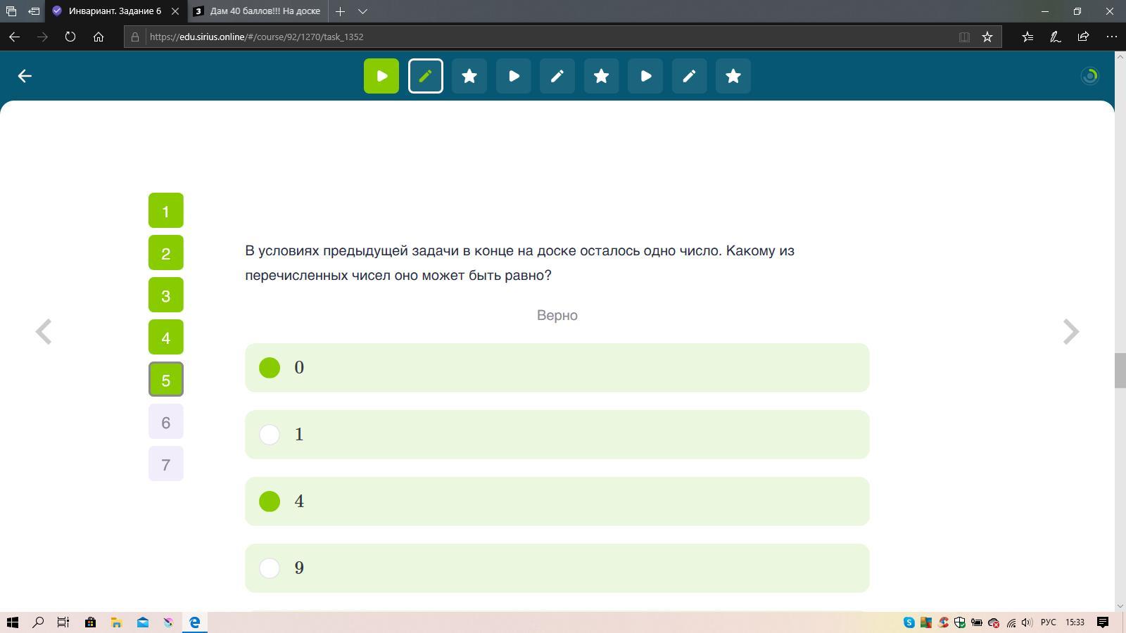 Ответ: 0 и 4 100% тоже сириус решаю