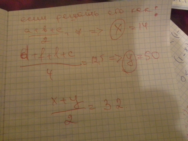 среднее арифметическое трех чисел равно 7 а среднее арифметическое четырех других равно 12,5.чему равно среднее арифмитическое всех семи чисел