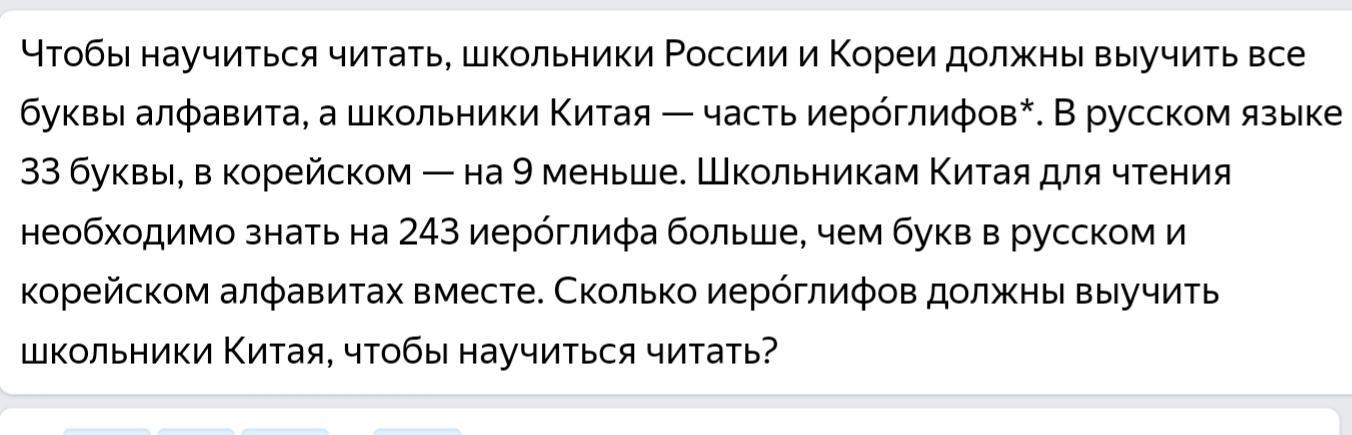 Ответ: чтобы научиться читать, школьники Китая должны выучить 300 иероглифов.