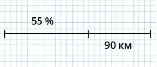 2) значит 90км это 45 %, тогда х км это 55% ( пропорция)