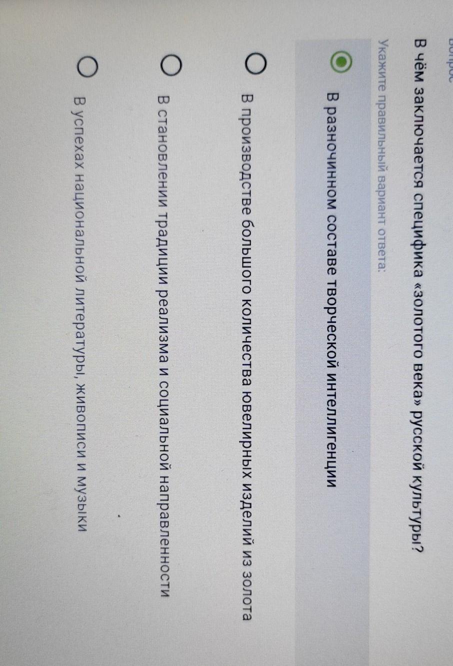 Я думаю,что последний вариант. Именно 19 век характеризуется в истории России крупными успехами литературы,живописи и музыки.