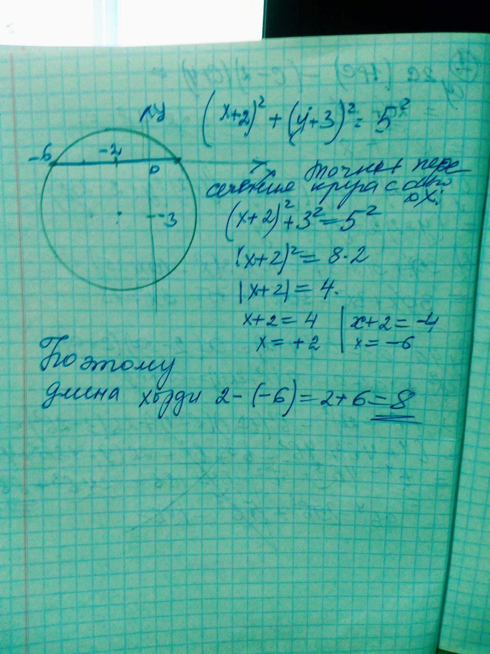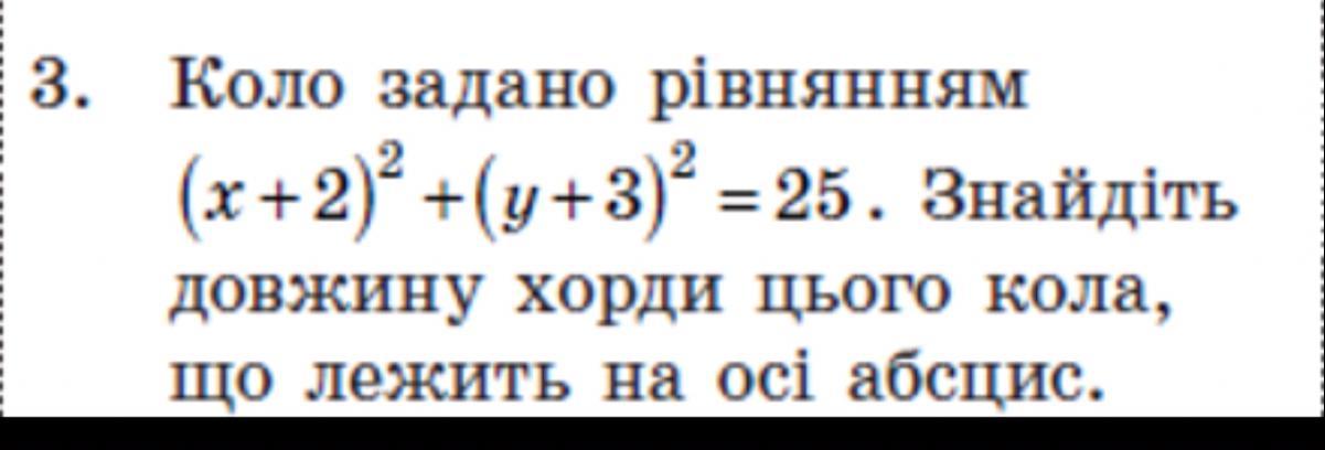 Коло задано рівнянням. (Х+2)^2 +(у+3)^2=25. Знайдіть довжину хорди цього кола, що лежить на осі абсцис