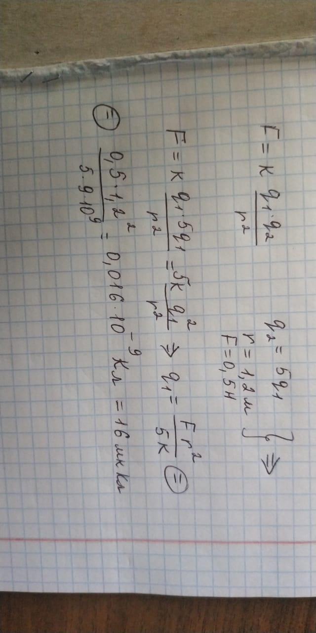 Значение одного заряда в 5 раз больше значения другого. Опре-