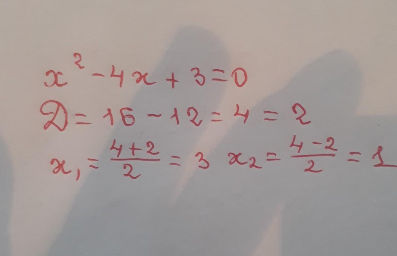 x² - 4x +3 =0 D₁ = D/4 =(4/2)² -3 = 2² - 3 =4 -3 = 1 ; √D₁ =√ 1 = 1