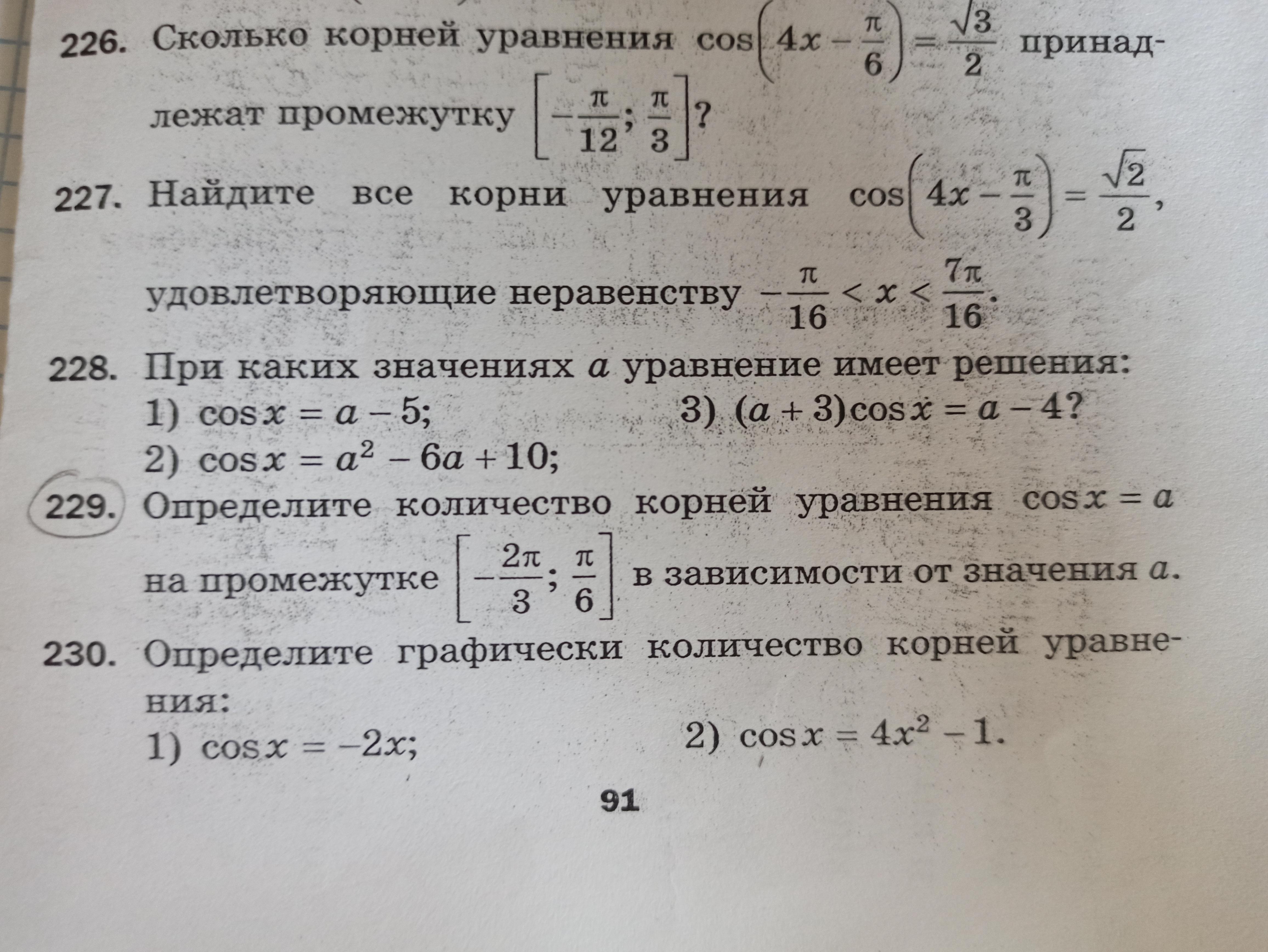 при а ∈[1/2; √3/2)∪[1] уравнение cosx=а имеет 1 корень
