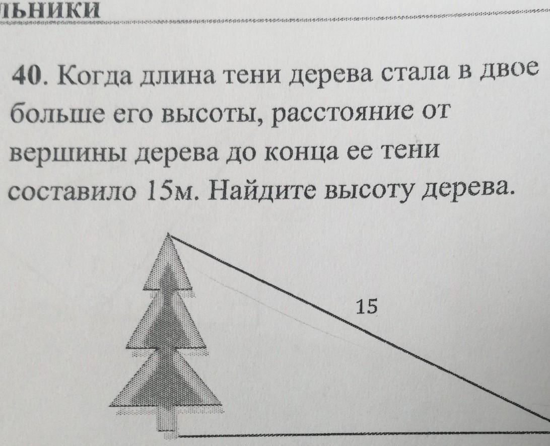 Дерево, его тень и расстояние от вершины дерева до конца тени образуют прямоугольный треугольник.