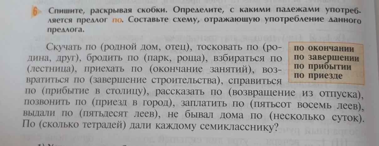 Ответ: скучать по родному дому,отцу; тосковать по родине,другу; бродить по парку,роще; взбираться по лестнице; приехать по окончанию занятий; возвратиться по завершении строительства; справиться по прибытию в столицу; рассказать по возвращению из отпуска; позвонить по приезду в город; заплатить по пятьцот восемь леев; выдали по пятьдесят леев; не бывал дома по нескольку суток; по сколько тетради дали каждому семикласснику
