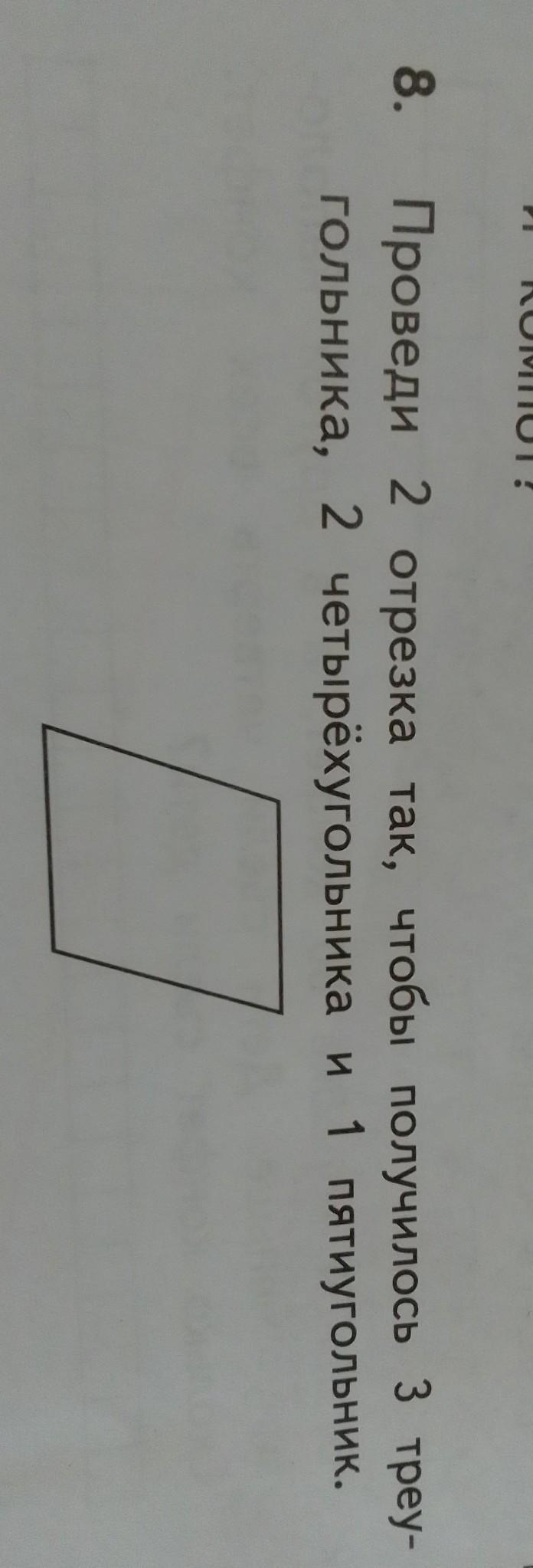 прямоугольнике с право линию от середины вертикальной линии до нижнего угла . Получается 3 треугольника , и 2 четырёхугольника.