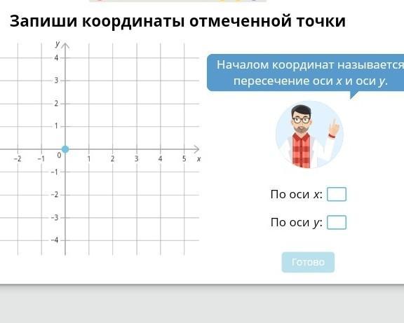 Если отмеченная точка это синяя, то по оси x=0 и по оси y=0