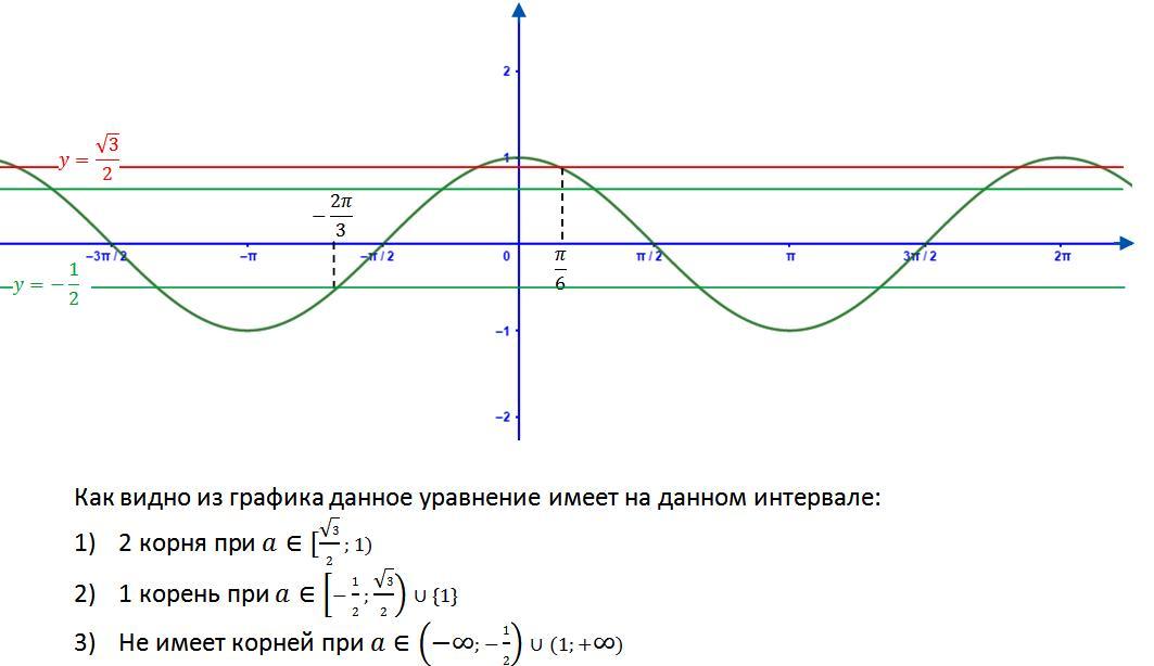 Определите количество корней уравнения cos x = a на промежутке [-2π/3; π/6] в зависимости от значения a.