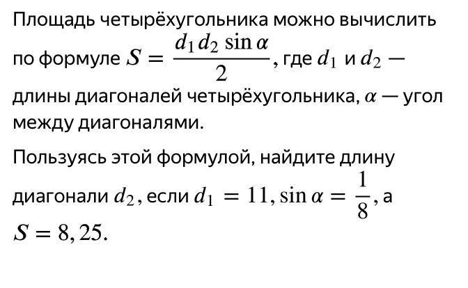 Нужно просто выразить длину диагонали из формулы