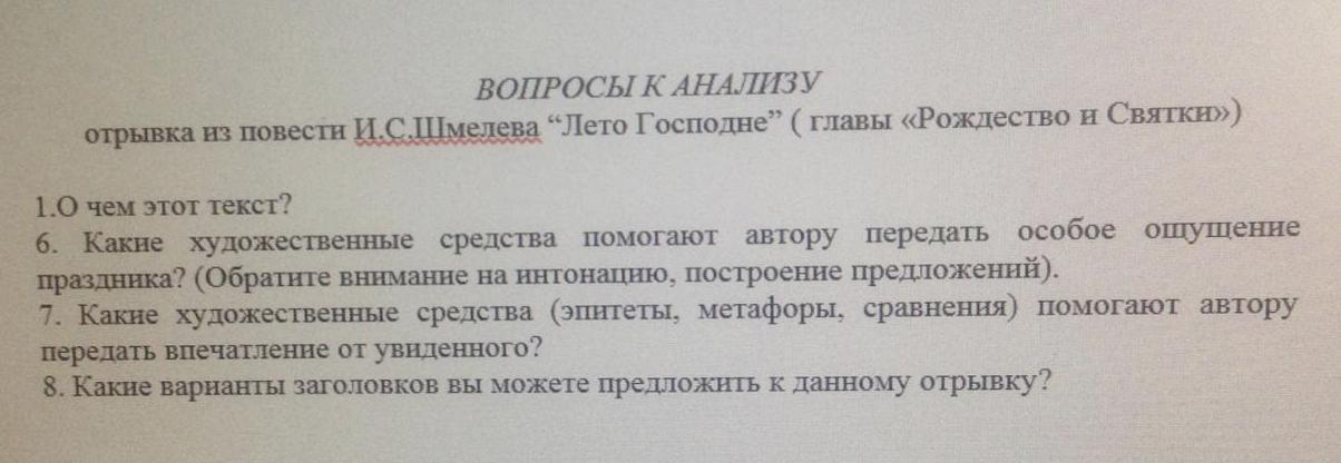 Сделайте анализ произведения "Лето господне" И.С.Шмелева (главы "Рождество" и "Святки") по палну: