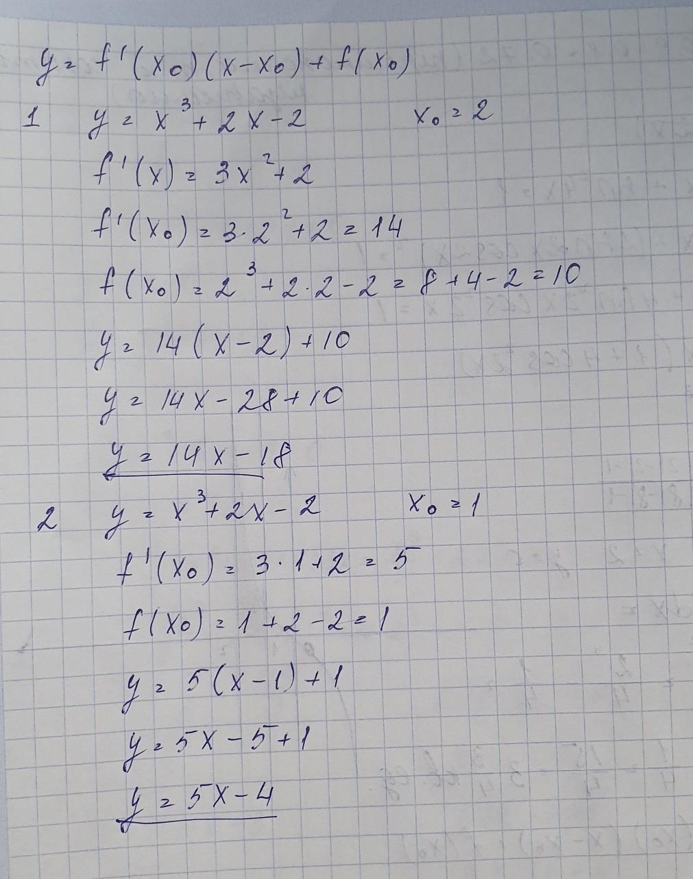 2.составить уравнения касательной к кривой у=х^(3)+2х-2 в точке с абсциссой х0=1.