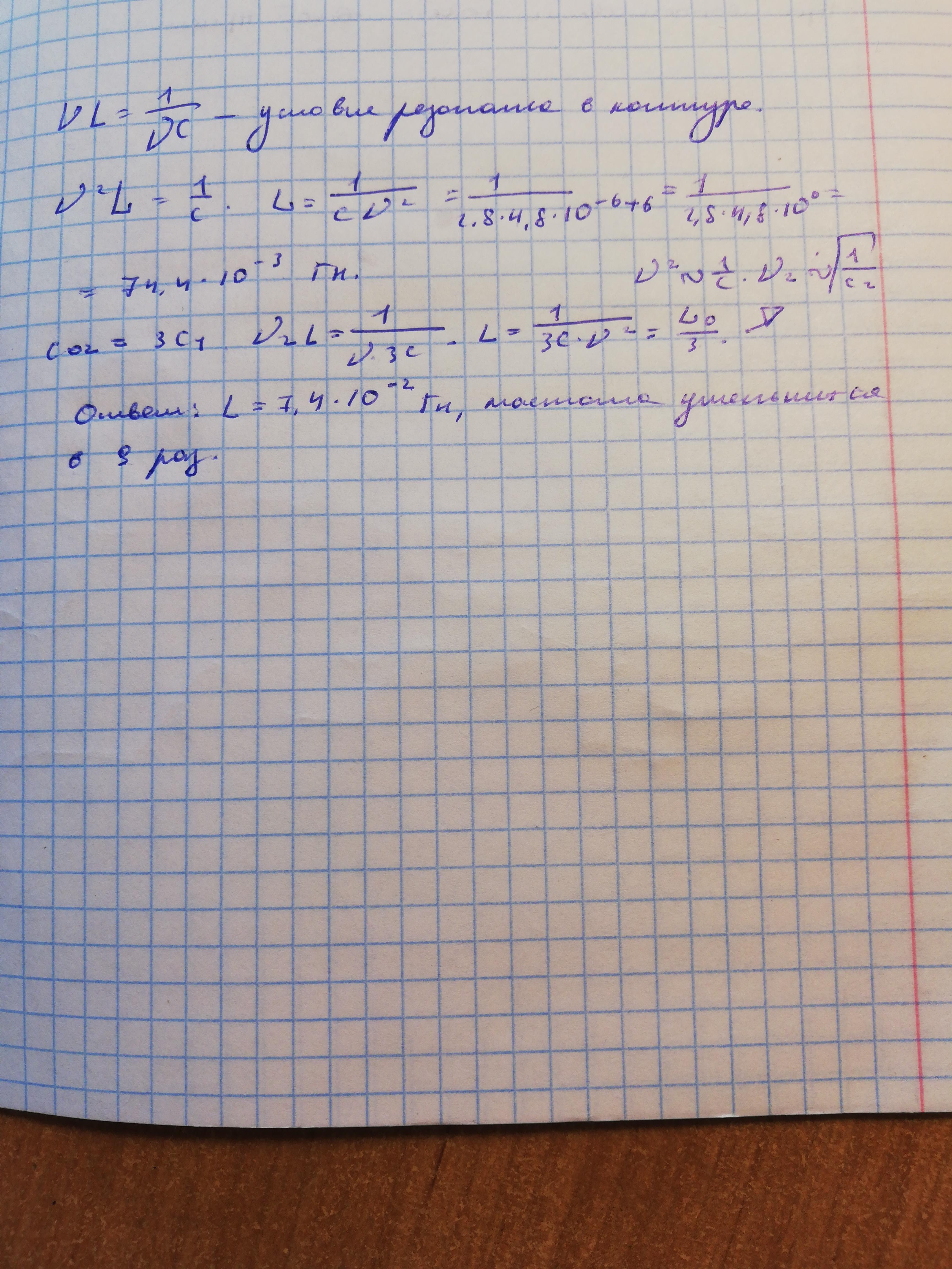 Резонанс в контуре lc где c=2.8 мкФ, наступает при 4.8кГц. найти индуктивность контура . как изменится частота колебаний, если параллельно к конденсатору подключить еще 2 таких же конденсатора ?