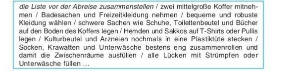 3. Auf den Boden des Koffers lege solche schwere Sachen wie Schuhe und Bücher!