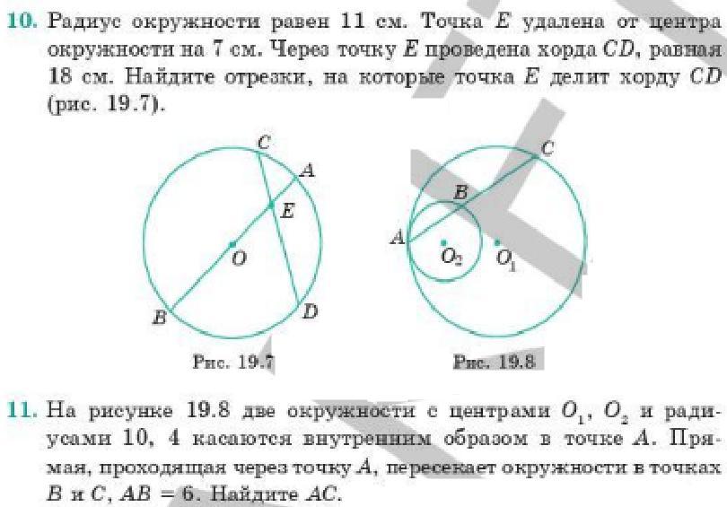 10) Произведения длин отрезков, на которые разбита каждая из хорд, равны. Пусть СЕ = х, СД = 18 - х.