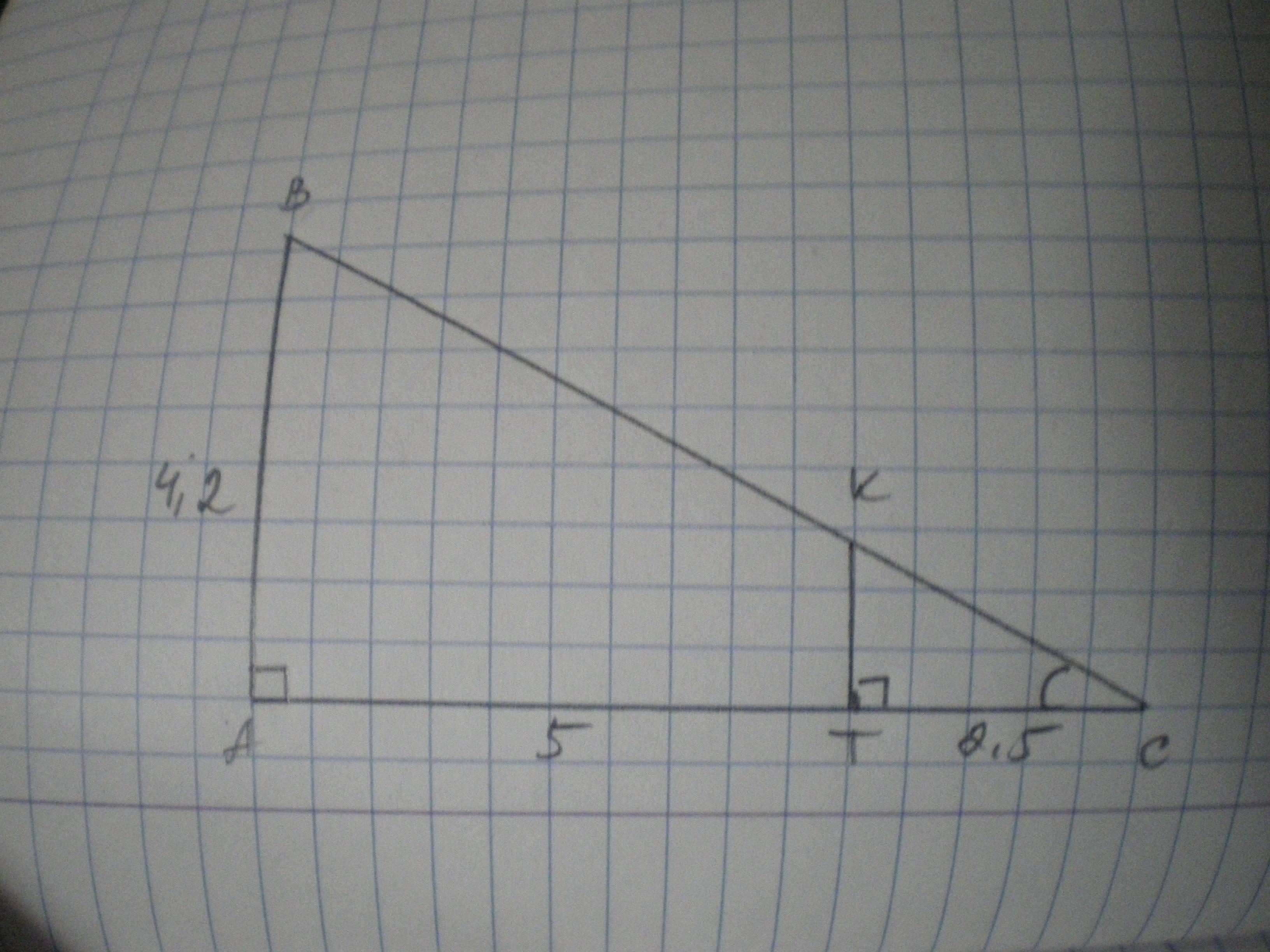 АВ - столб, АВ=4,2 м, КТ - человек, АТ=5 м, ТС - тень, ТС=2,5 м. Найти КТ.