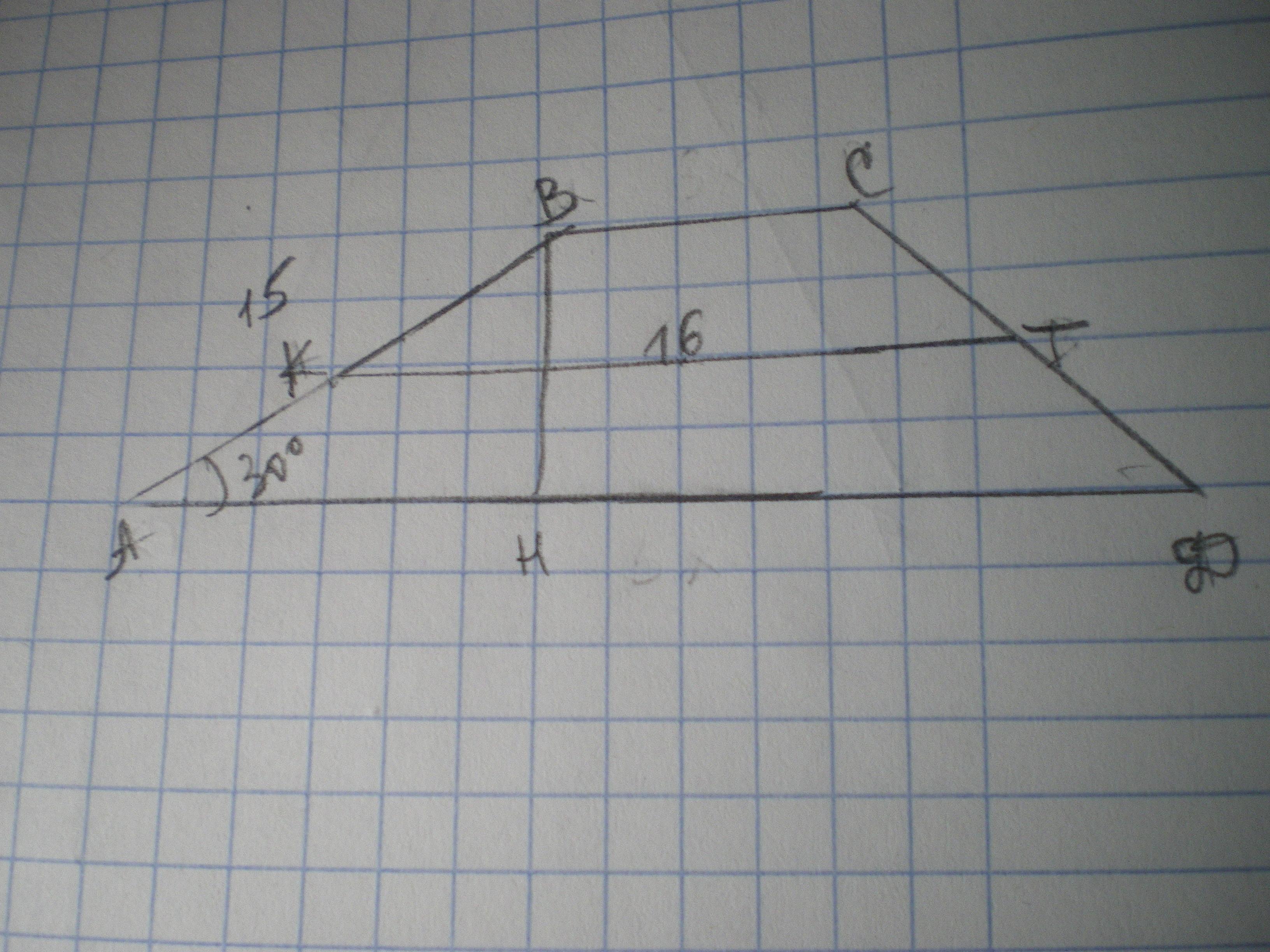 Проведем высоту ВН и среднюю линию КТ, КТ=16 см.