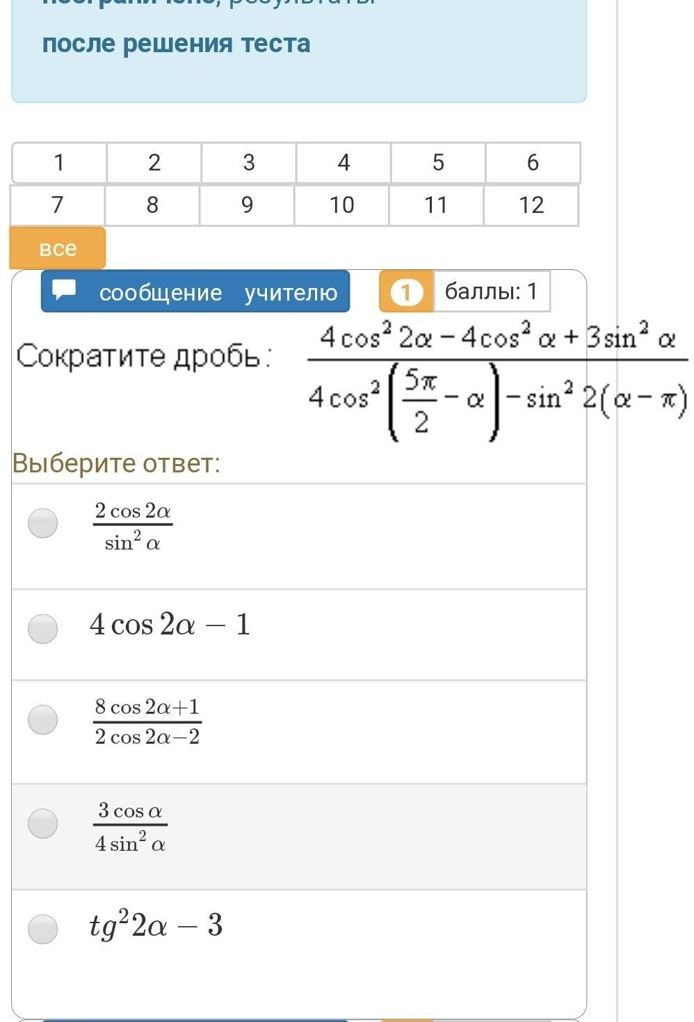 Ответ: (8cos2α +1) / (2cos2α - 2).