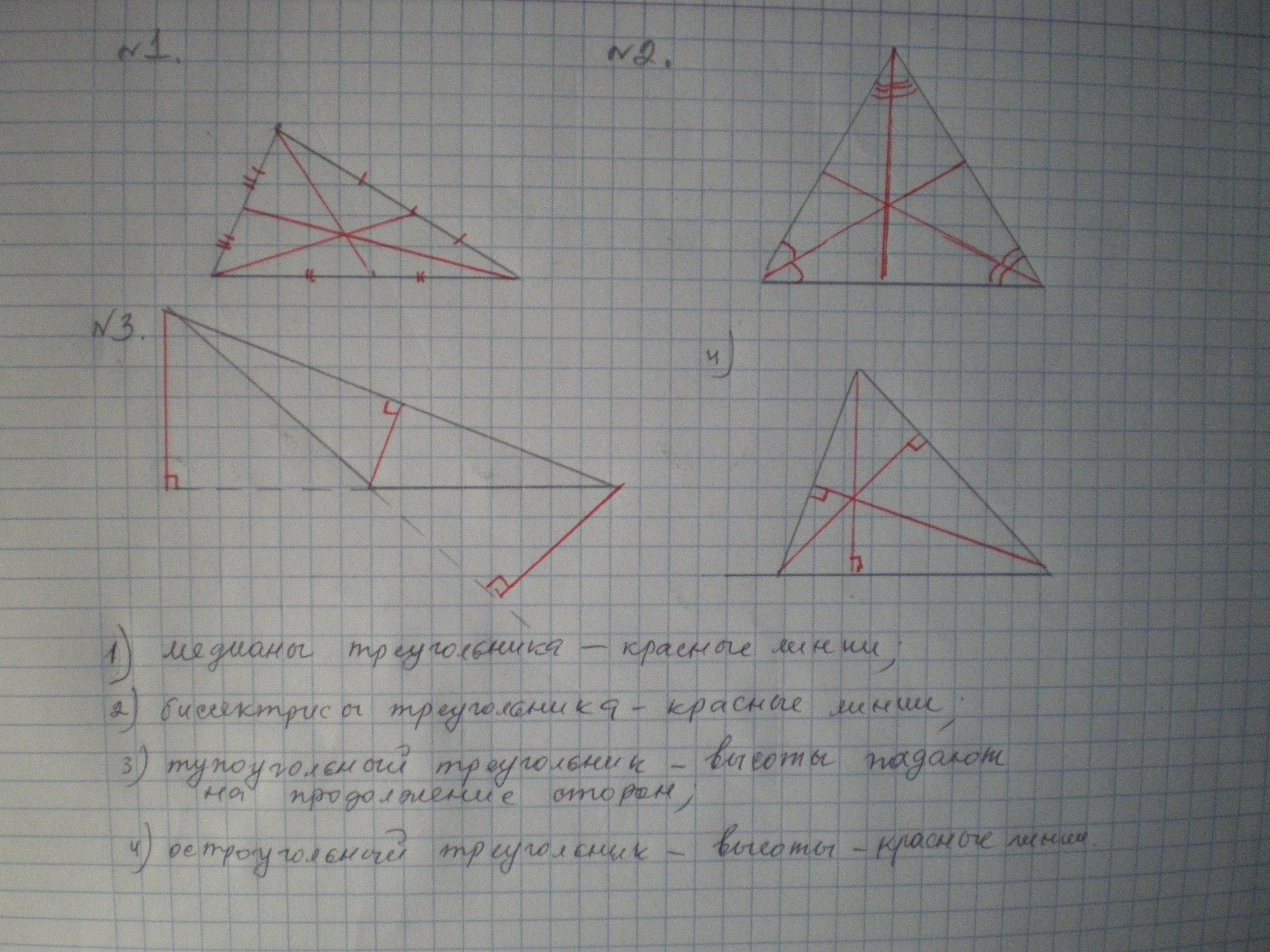 № 1. Нарисуйте треугольник. С помощью линейки с делениями проведите медианы этого треугольника.