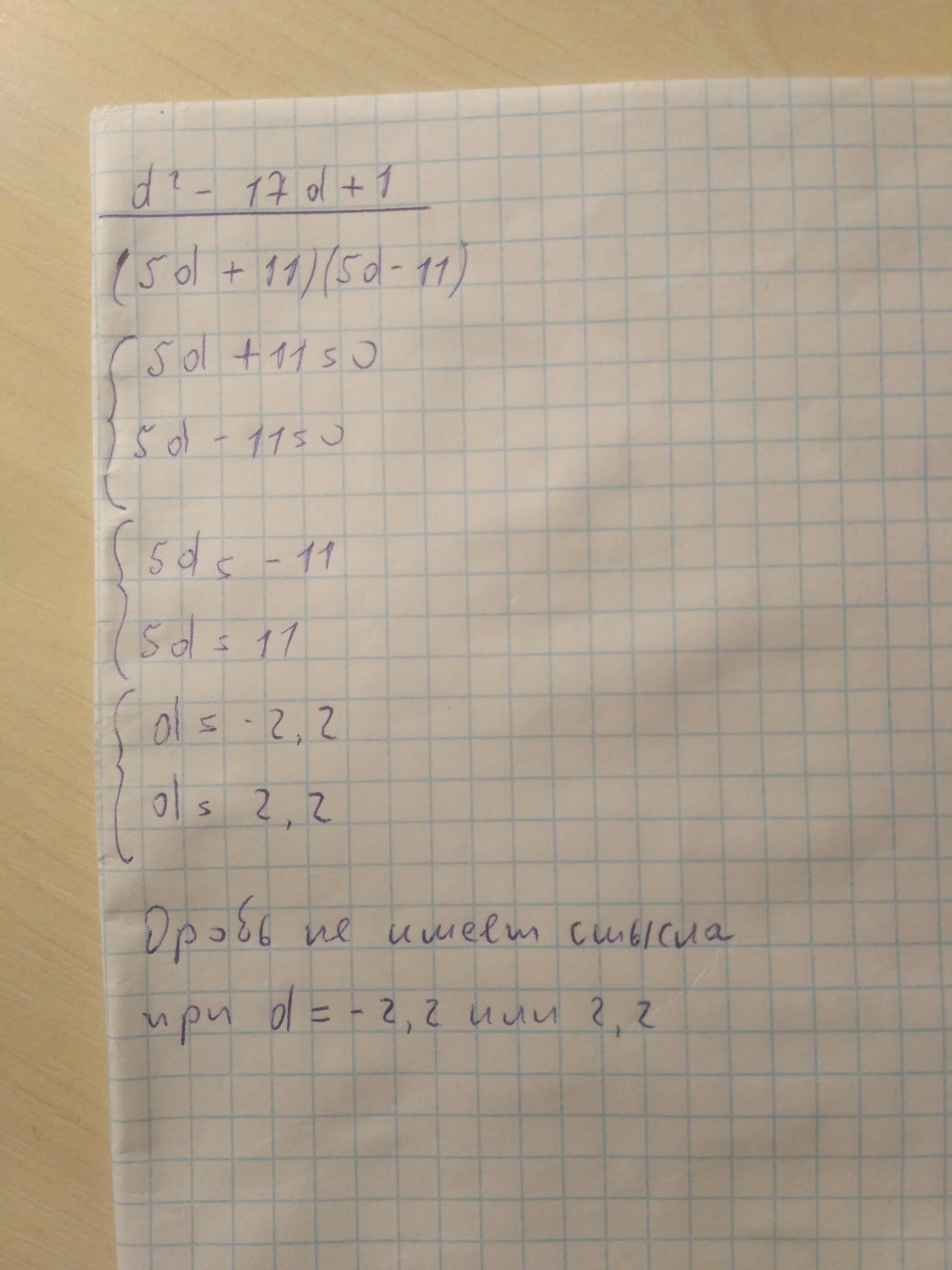 т.е. (5d+11)(5d-11)=0 5d+11=0 bkb 5d-11=0 d₁= -11 : 5= -2,2 d₂= 11:5=2,2