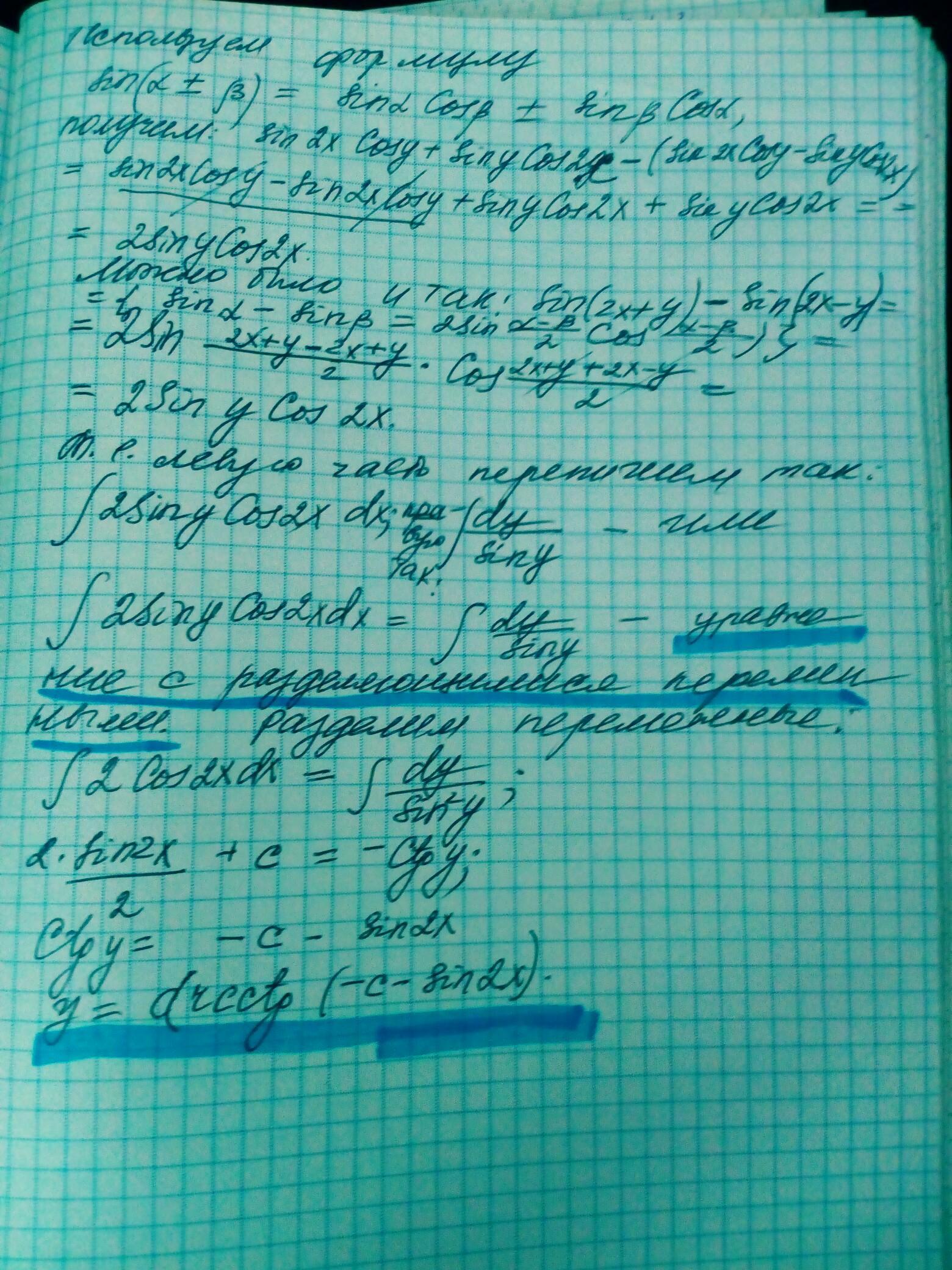 (sin(2x+y)-sin(2x-y))dx=dy/siny