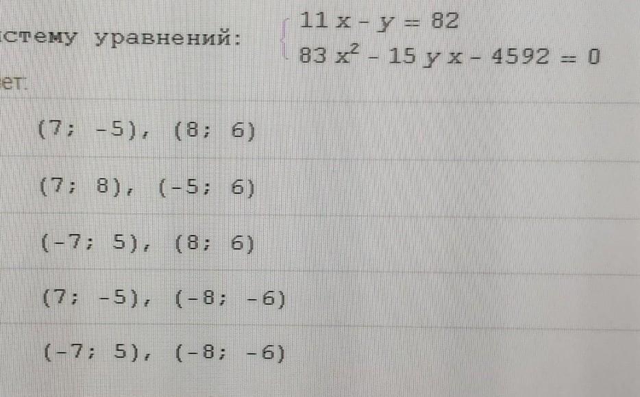 х₂=8 ⇒ y₂=11 * 8 -82= 6 y₂= 6