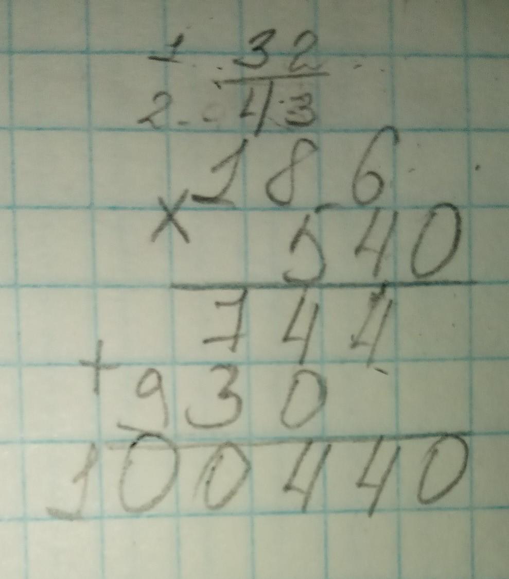 сначало умножаем 1. 186*4=744; 6*4=24(2 запоминаем); 8*4=32+2(которую запомнили)=34(3 запоминаем); 1*4=4+3(которую запомнили)=7 => 744