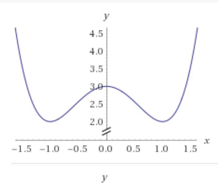 В точках х = +-1 есть 2 общих минимума, у(мин) = 2,