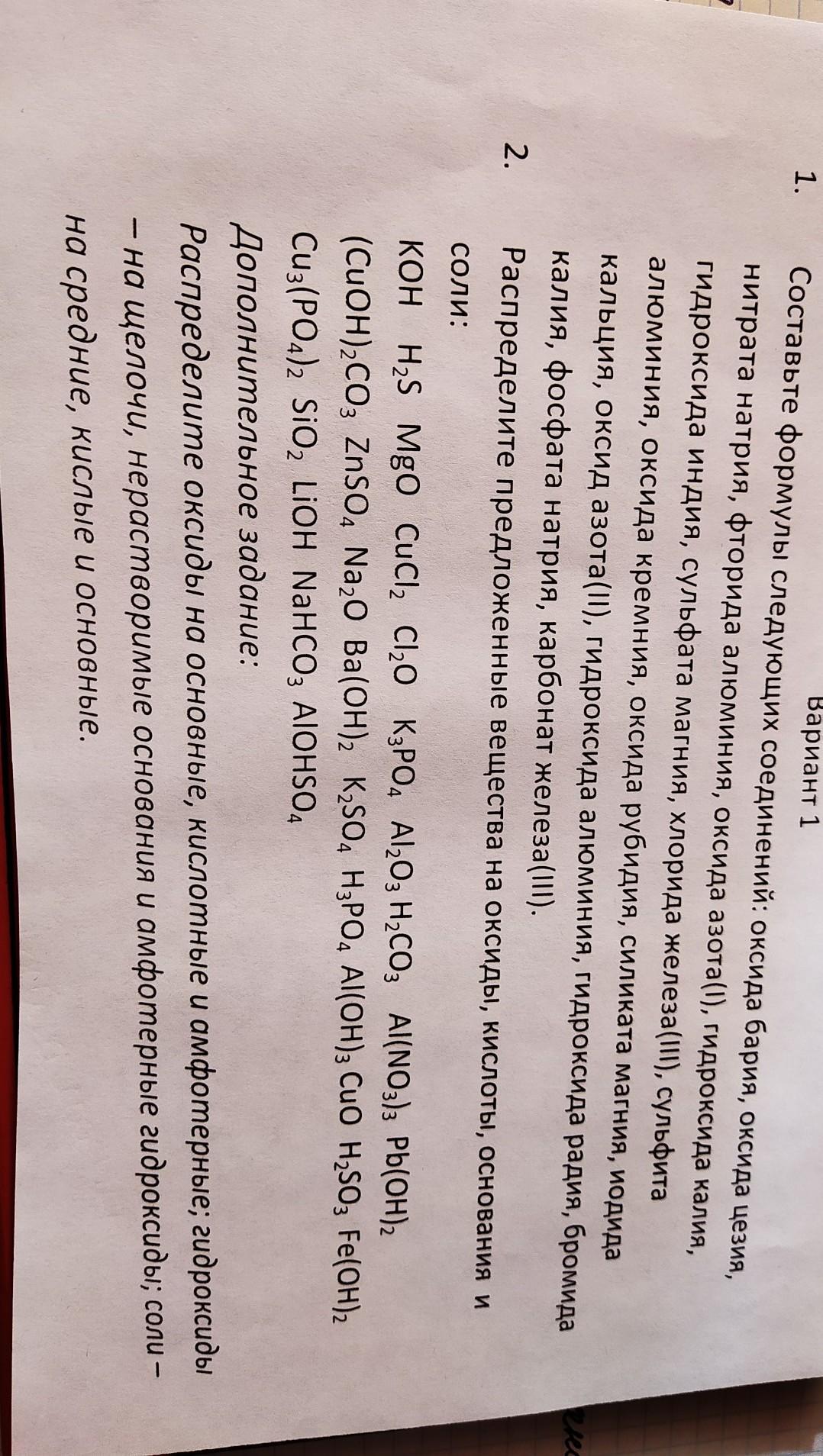 BaO, Cs2O, NaNO3, AlF3, N2O, KOH, In(OH)3, MgSO4, Fe(Cl)3, Al2(SO3)3, SiO, Rb2O, MgO:XSiO2•H2O (я первый раз слышу), CaI2, NO, Al(OH)3, Ra(OH)2, KBr, Na3PO4, Fe2(CO3)3