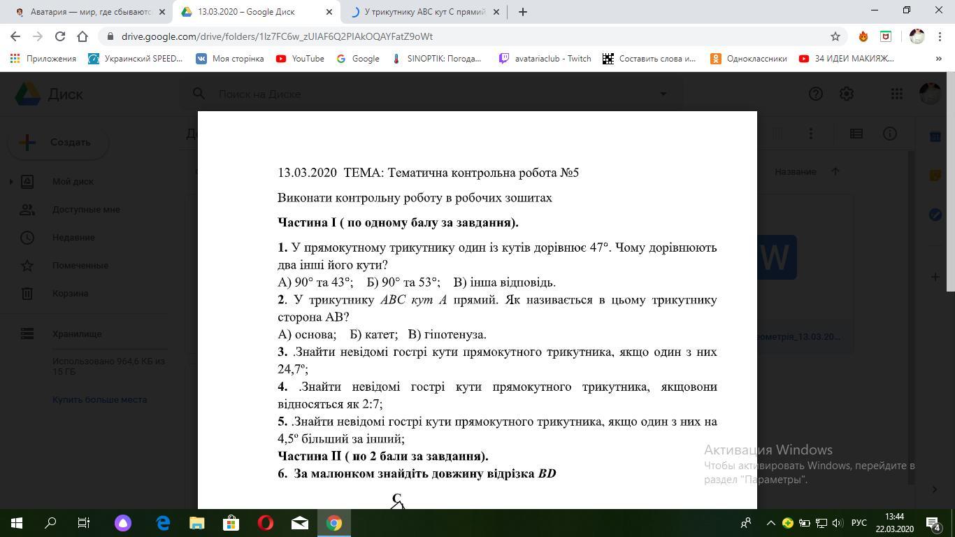 Ответ:1) 90-47= 43 . Тому що сума кутів в прямокутному трикутнику 90 ° . Відповідь: А).