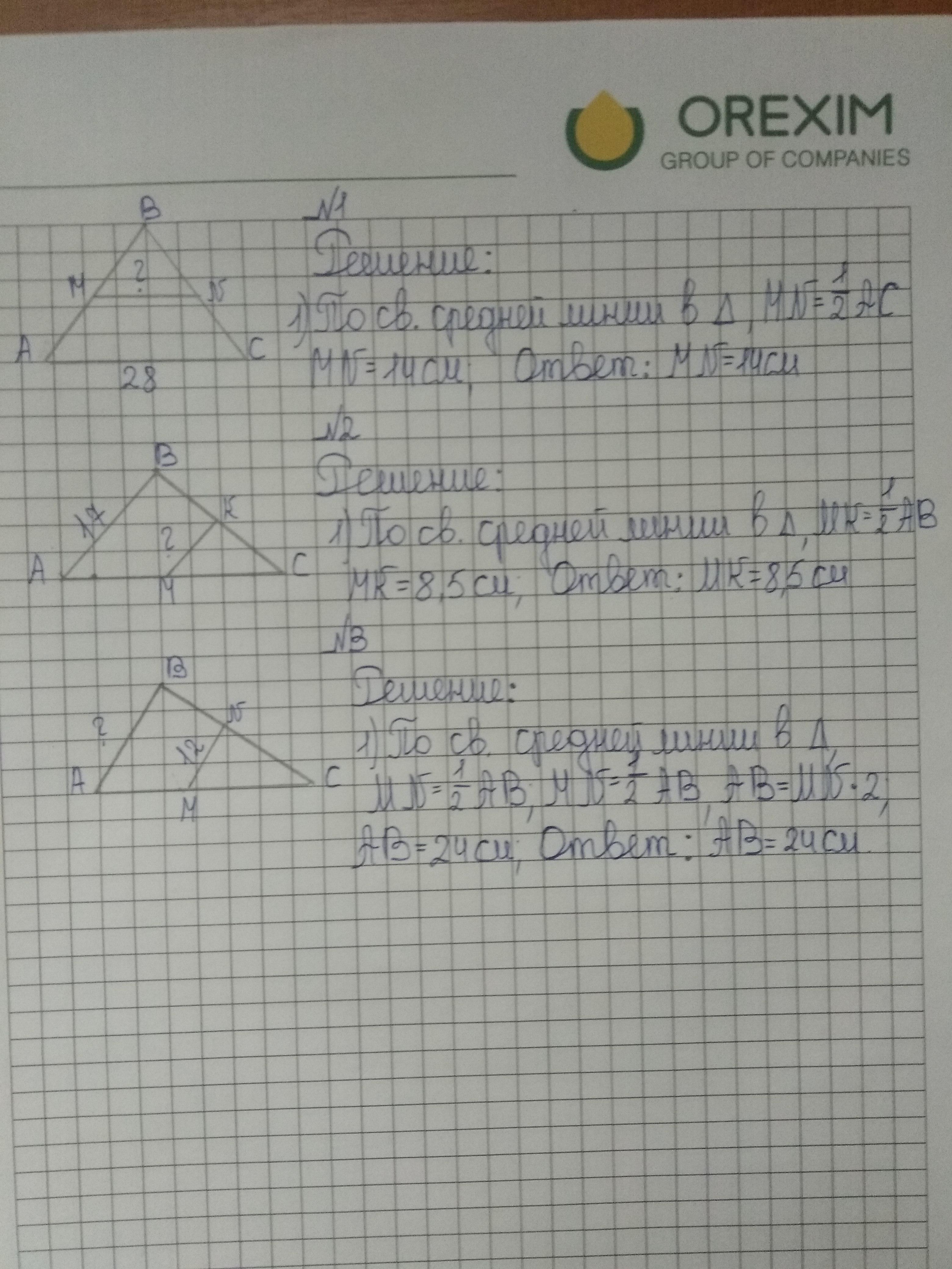 Ответ: Задачи решаются по свойству средней линии в треугольнике