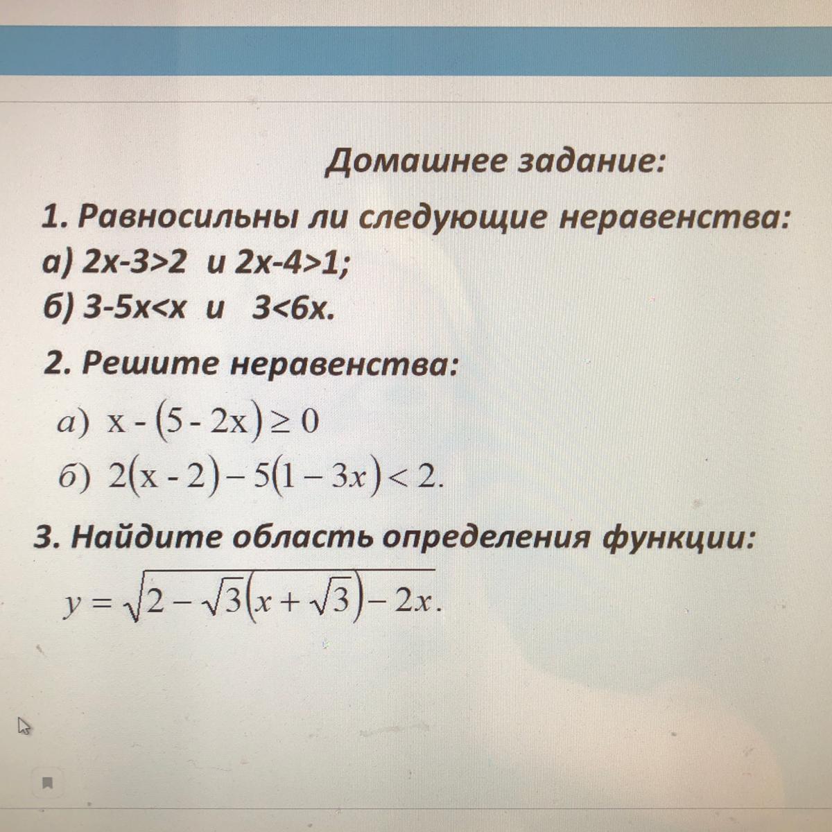 Ответ: знаю ответ на 1 и 2(б) задание: 1 а) да,ттак как будет х>5/2 б) да ,так как будет х>1/2