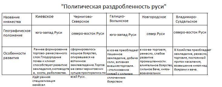 Таблица:Развитие русских княжеств в период раздробленности Киевского государства