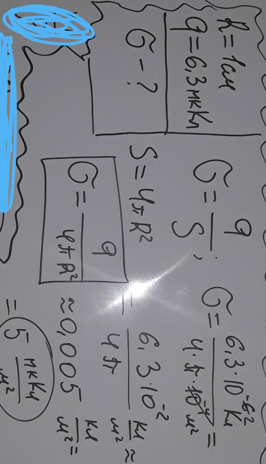 Металлическому шару радиусом 1 см сообщили заряд Q = 6,3 мкКл. Какова поверхностная плотность заряда на шаре