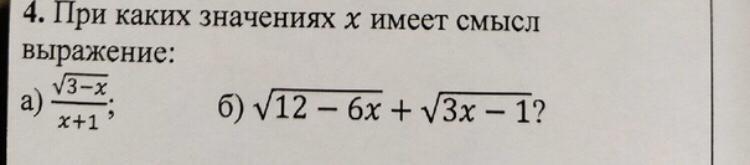 б) Чтобы выражение имело смысл, подкоренные выражения должны быть 0.