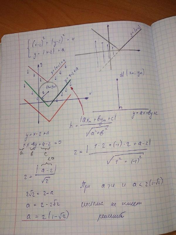 a = 2(1-) - при этом a касание. При меньшем a решений не будет.