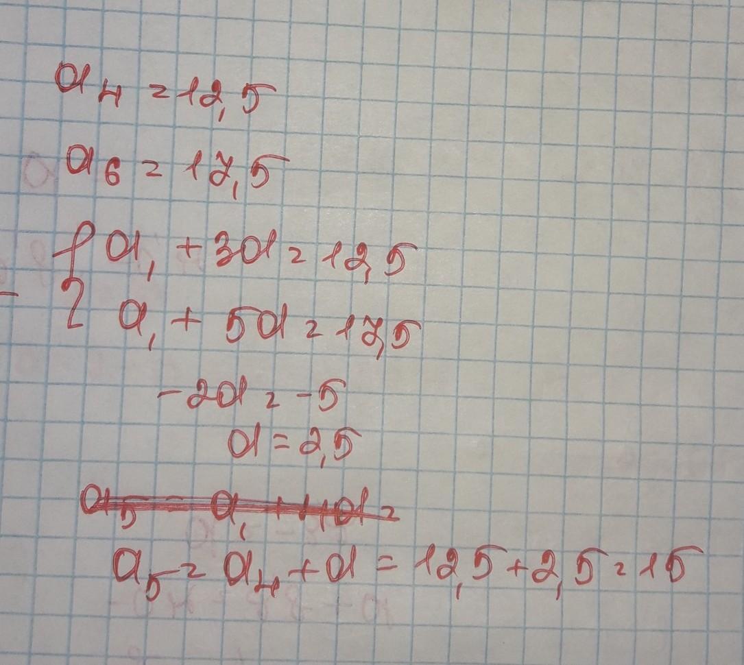 а5=а4+d; a5=12.5+2.5, a5=15