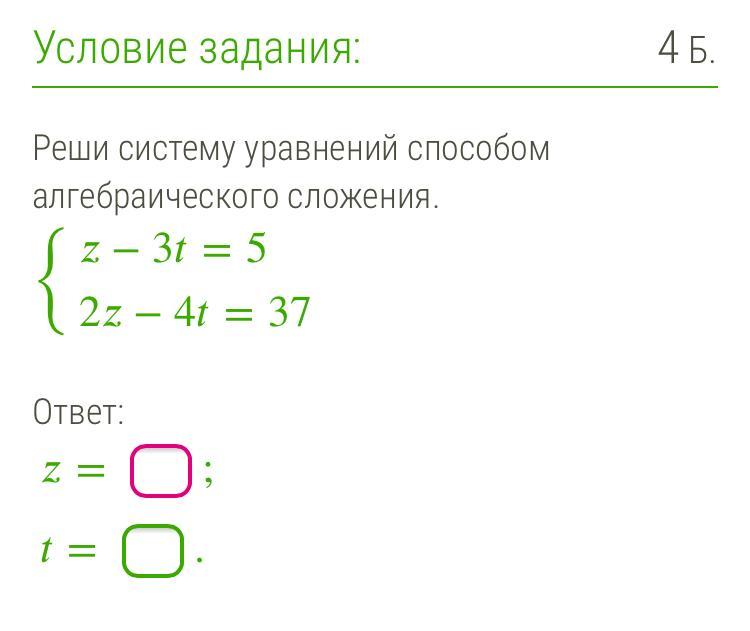 в 1 номере в верхнем выражении переносим -3t за знак равенства, получается z=5+3t в нижнем тоже самое z=(37+4t)/2 приравниваем, 5+3t=(37+4t)/2 затем находим t 10+6t=37+4t 2t=27 t=13,5 подставляем в первое выражение t, где z=5+3t и получается z=5+3*13,5 z=45,5