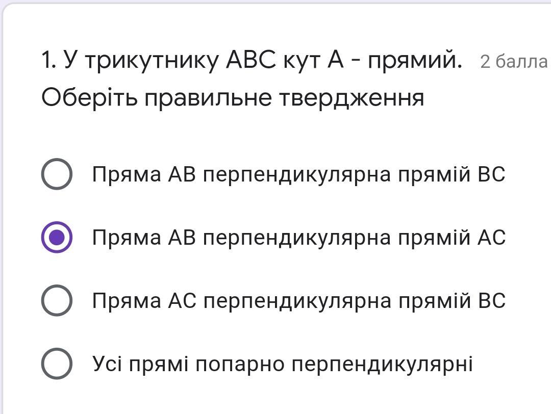 Ответ: Пряма АВ перпендикулярна прямій АС