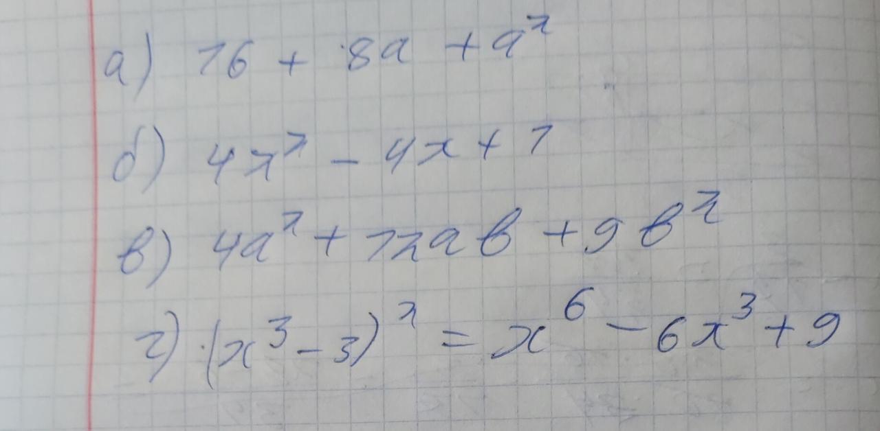 в) 4a во второй степени + 12ab + 9b во второй степени