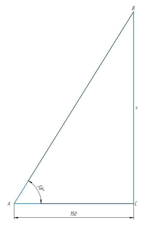 Расстояние от наблюдателя до башни главного здания МГУ имени М.В. Ломоносова равно 150 м, а угол, под которым видно здание, равен 58°. Используя таблицу значений тригонометрических функций, найдите высоту башни. В ответе укажите приближенное значение, равное целому числу метров.