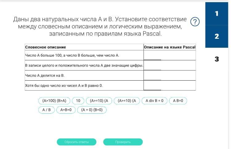 (A>100)(B>A)|[Проверка на условие(> ← знак больше)/в первой скобке пройдёт если будет больше ста, во второй если будет больше A]