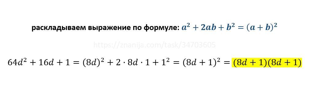 64d² + 16d + 1 = (8d + 1)² = (8d + 1)(8d + 1)
