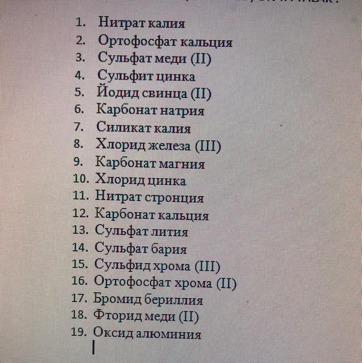 Помогите пожалуйста!!!!!! Надо составить формулы веществ. За 19 формул даю 19 баллов!!!