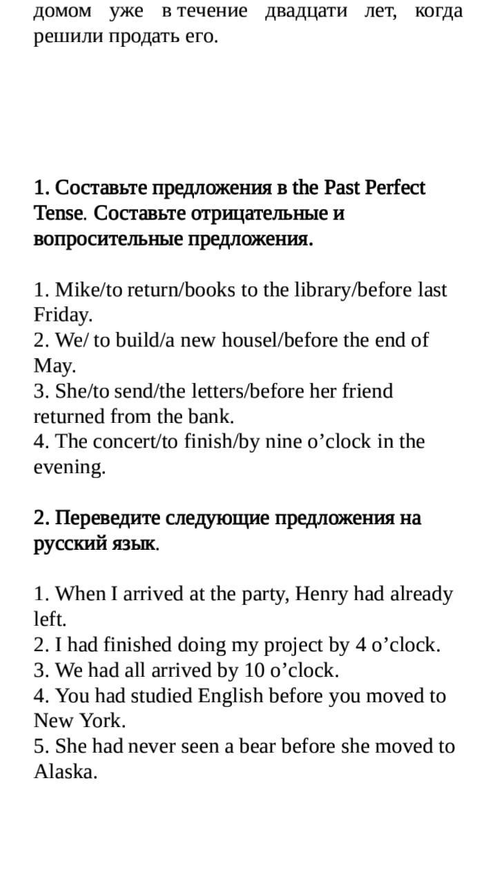 1. Когда я приехал на вечеринку, Генри уже ушел. 2. Я закончил делать свой проект к 4 часам.