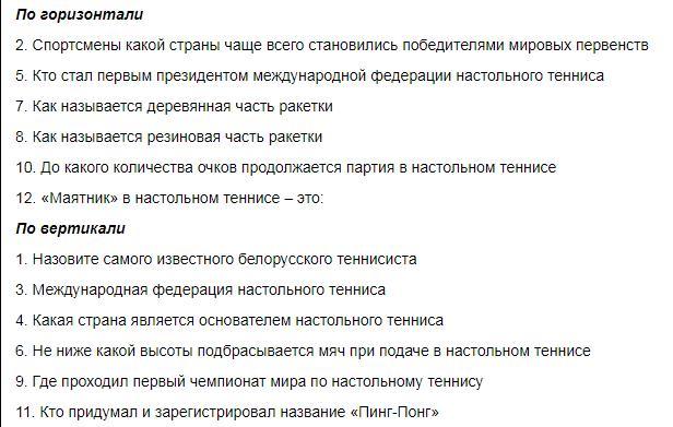 составить кроссворд по основным терминам настольного тенниса (15 слов по вертикали, 15 по горизонтали).
