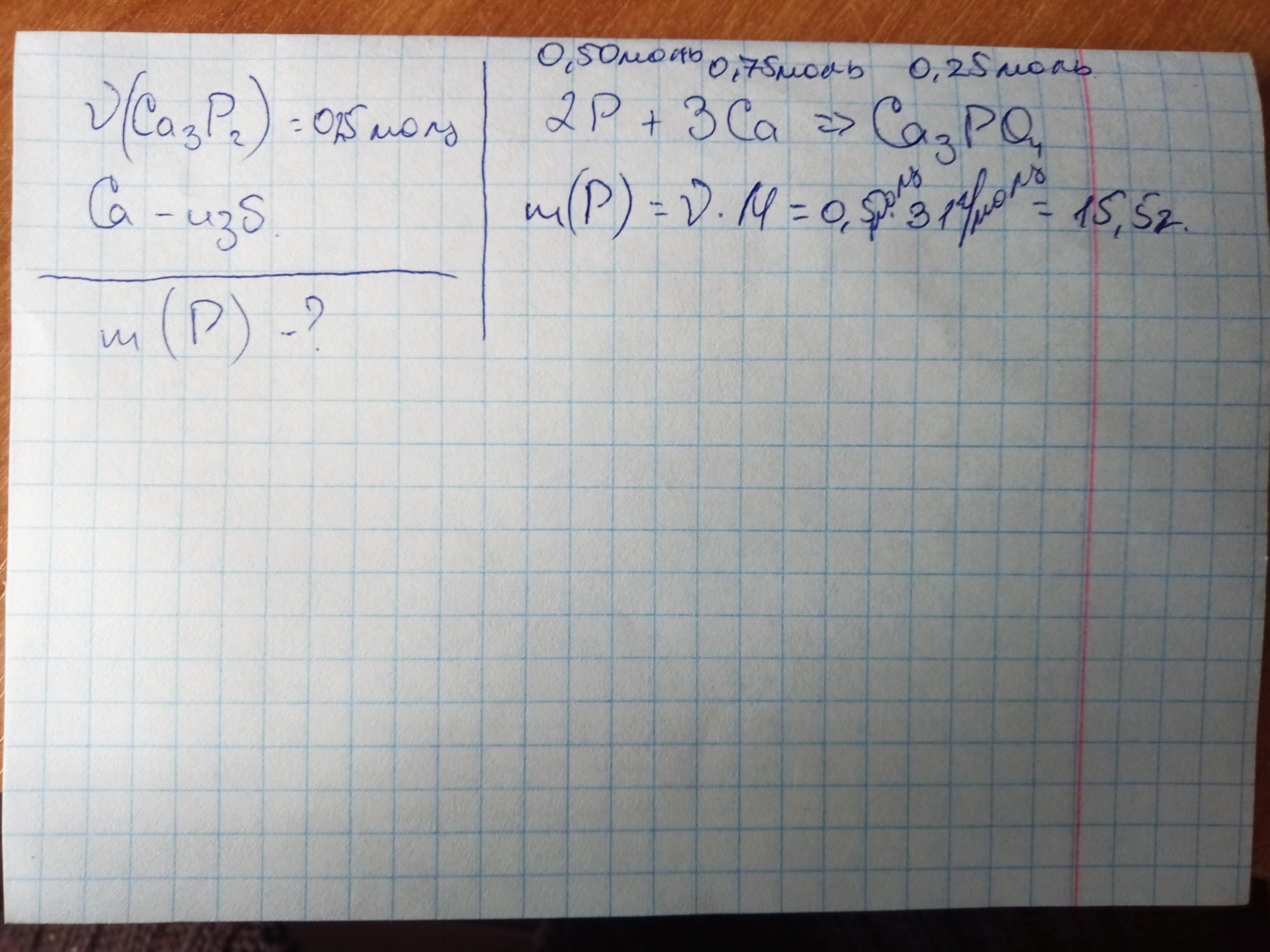 При взаимодействии фосфора с кальцием получено 0,25 моль фосфида кальция. Какова масса взятого для реакции фосфора, если кальций взят в избытке?
